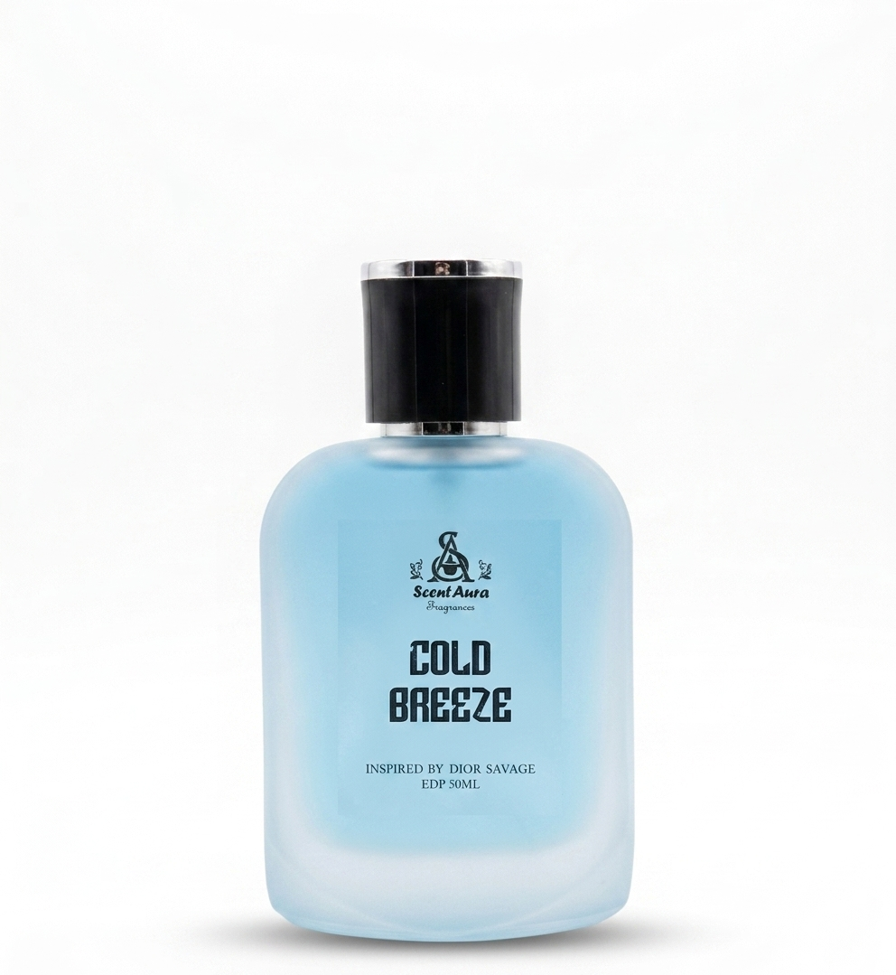 Inspired by DIOR SAWAGE, the COLD BREEZE shines with known for its rich notes like redients vary by concentration (EDT, EDP, Elixir) but center around fresh, spicy, and woody notes like Calabrian Bergamot, Sichuan Pepper, Lavender, and the key synthetic, — the mark of ambition.